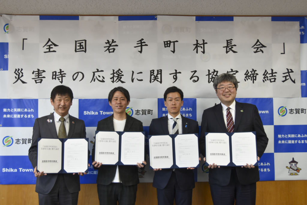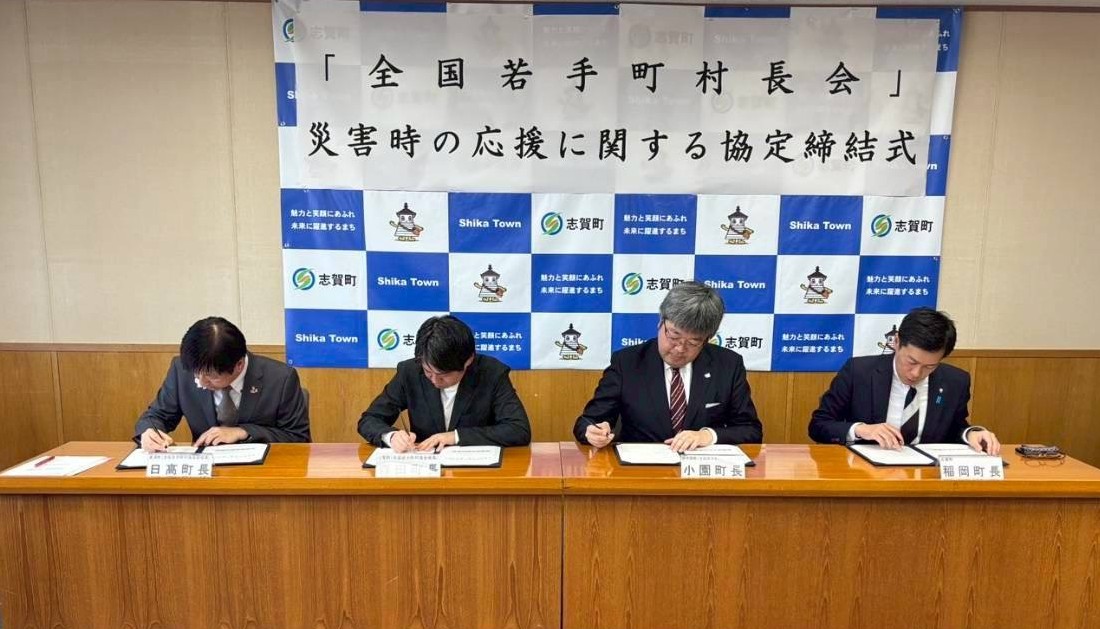 令和6年の能登半島地震の発生から約2年。復興への歩みが着実に進む石川県志賀町において、日本の地方自治の未来を担う大きな一歩が刻まれました。全国の若手町村長で構成される「全国若手町村長会」に加盟する町村のうち、参加申し込みをした32の自治体において、大規模災害時における相互支援を目的とした「災害時相互応援に関する協定」を締結。その締結式が令和8年3月30日、志賀町役場にて執り行われました。